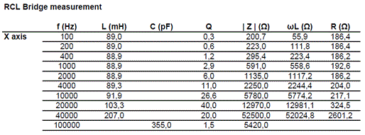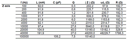 Now we have to test the measurement system, composed of the probe, the receiver and the PC for acquisition and treatment of the signal. Since the sound card of the PC is an integral part of the measurement system, we performed, as a first step, a characterization to determine its frequency response. We connected to one of the card input channels a signal from a generator with amplitude 10 mV at various frequency from 10 Hz to 20 kHz and we set, for the card, a sample rate of 44,1 kHz – stereo, with the other channel closed on a 50 ohm termination. In this test, we obtained the following results: ![]() ![]() Fig. 4-1 Frequency response of the audio card Now we must test the receiver introducing the probe in a known induction field. We used the following configuration: • transmitting loop: square loop of 40 turns – 0,5 m side; • receiving loop: one of the three windings of the triaxial probe; • variable frequency for the generated field from 10 Hz to 20 kHz; • form of the current used: sinusoidal; • generated induction field: about 470 pT (see tables below); • distance from transmitting loop: 3,5 m; • plane of the transmitting loop parallel to the plane of the receiving loop; • maximum amplification selected on the receiver. During the test we recorded (with SR of 44,1 kHz) the signals acquired by the audio card (connected to the receiver) and subsequently we analyzed them with FFT techniques (65 kp and Hamming window). The first step of the analysis was to obtain the value of measured induction against the effective value generated by the transmitting loop. Considering the numbers, we can evaluate the voltage and the short circuit current induced in the receiving loop: ![]() Next, by examining the recorded spectrogram, we can read the measured values at various frequencies. Then, using a circuital simulation software, we can determine the receiver amplification and, considering also the audio card, the total amplification of the system, as shown below: ![]() Using the amplification values shown in the previous table, we can determine the signal levels at the audio card and receiver input. ![]() Here “RX” is used with the meaning of “receiver”. The induced voltage on the receiving loop is equal to the receiver input signal. The diagram shown below indicates the effective induction value and the measured value. The input level at the receiver is equal to the voltage induced in the receiving loop by the induction field. From this voltage we can obtain the relative induction value and this is the measured induction. ![]() ![]() Fig. 4-2 Measured and