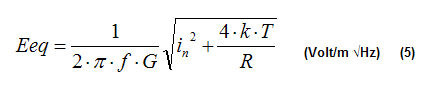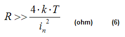 Where In is the contribution of the amplifier and the term 4*k*T/R is the contribution of the thermal noise of resistor R. Equation (4) can be used instead of (5) if: